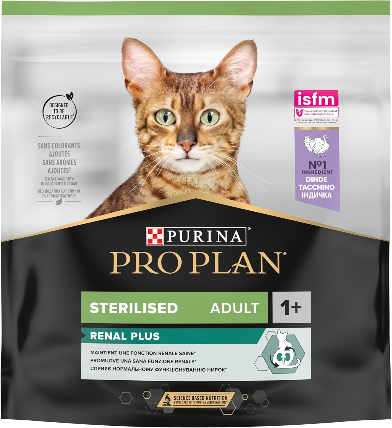 غذای خشک گربه Purina Pro Plan Sterilised Adult Renal Plus with Turkey یک غذای کامل و علمی برای گربههای بالغ عقیمشده است که نیازهای ویژهی این گربهها را برای حفظ سلامت کلیهها و وزن مناسب بدن تأمین میکند.